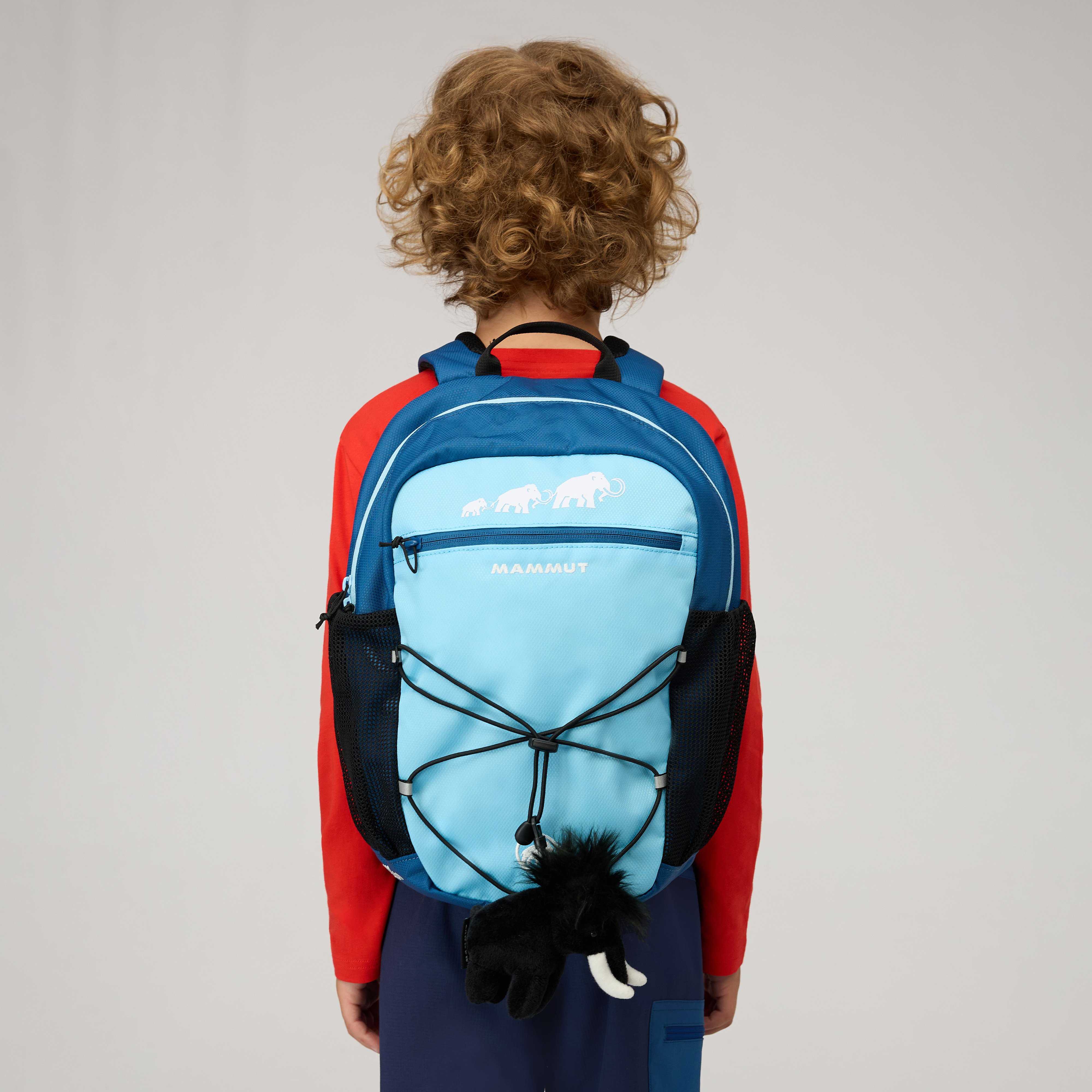 Kleiner Tagesrucksack mit bewährter Unterteilung, für 2–9-jährige Kinder je nach Volumen. Inklusive Mammut-Stofftier.