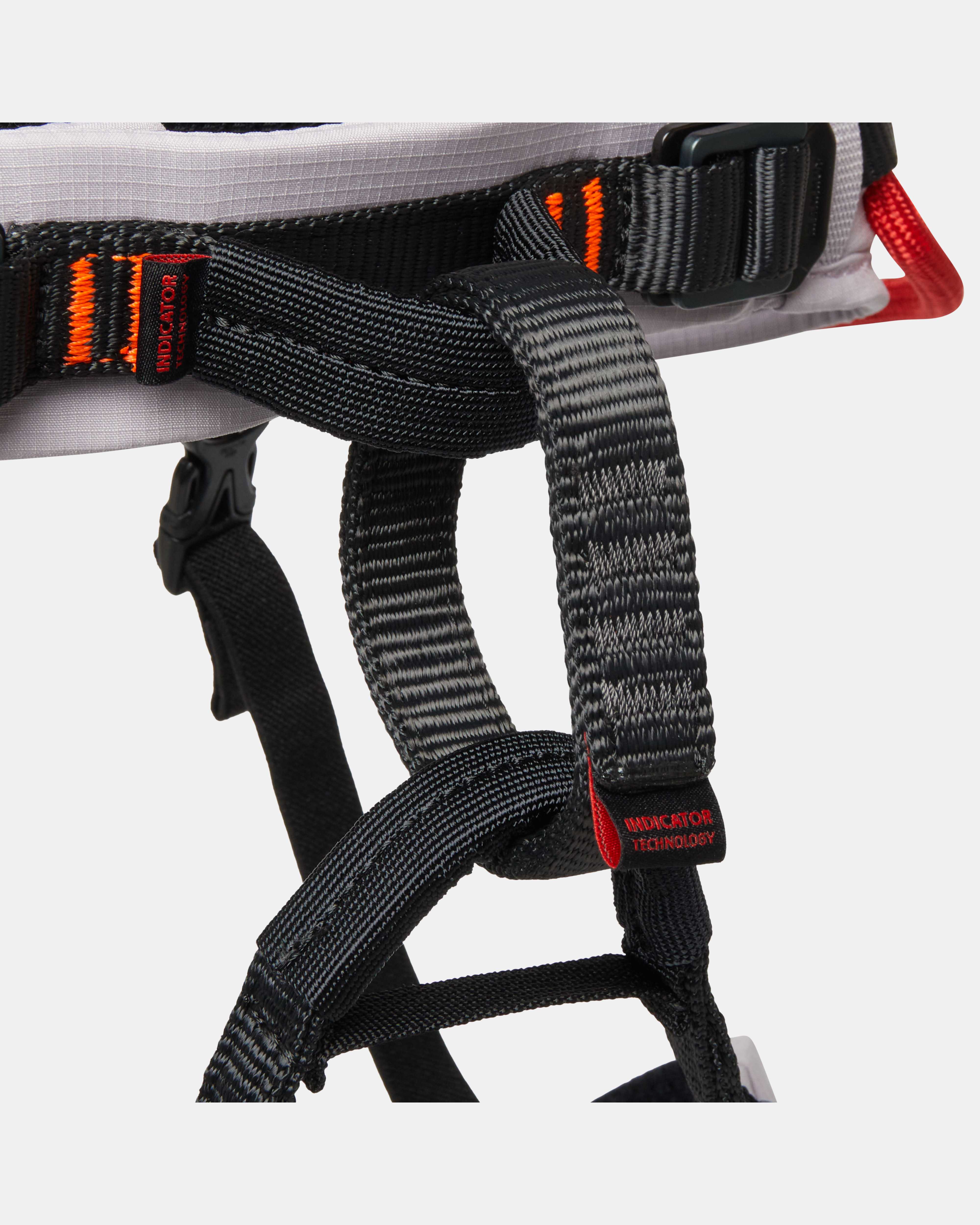 • Indicateur de remplacement du baudrier au niveau des points d'encordement et de la boucle d'assurage