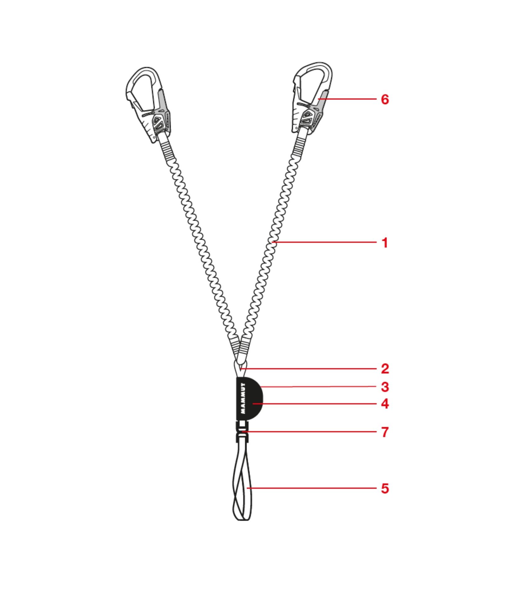 Tlumič pádu: Klíčová součást tvého ferratového setu. Pohlcuje energii zachycení případného pádu a chrání tvé tělo před extrémními silami nárazu – což je zásadní pro prevenci zranění v důsledku pádu. Pokud byl tlumič pádu již jednou aktivován, je to obvykle označeno štítkem na samotném ferratovém setu. V takovém případě bys set v žádném případě neměl znovu používat a měl bys ho vyměnit za nový.