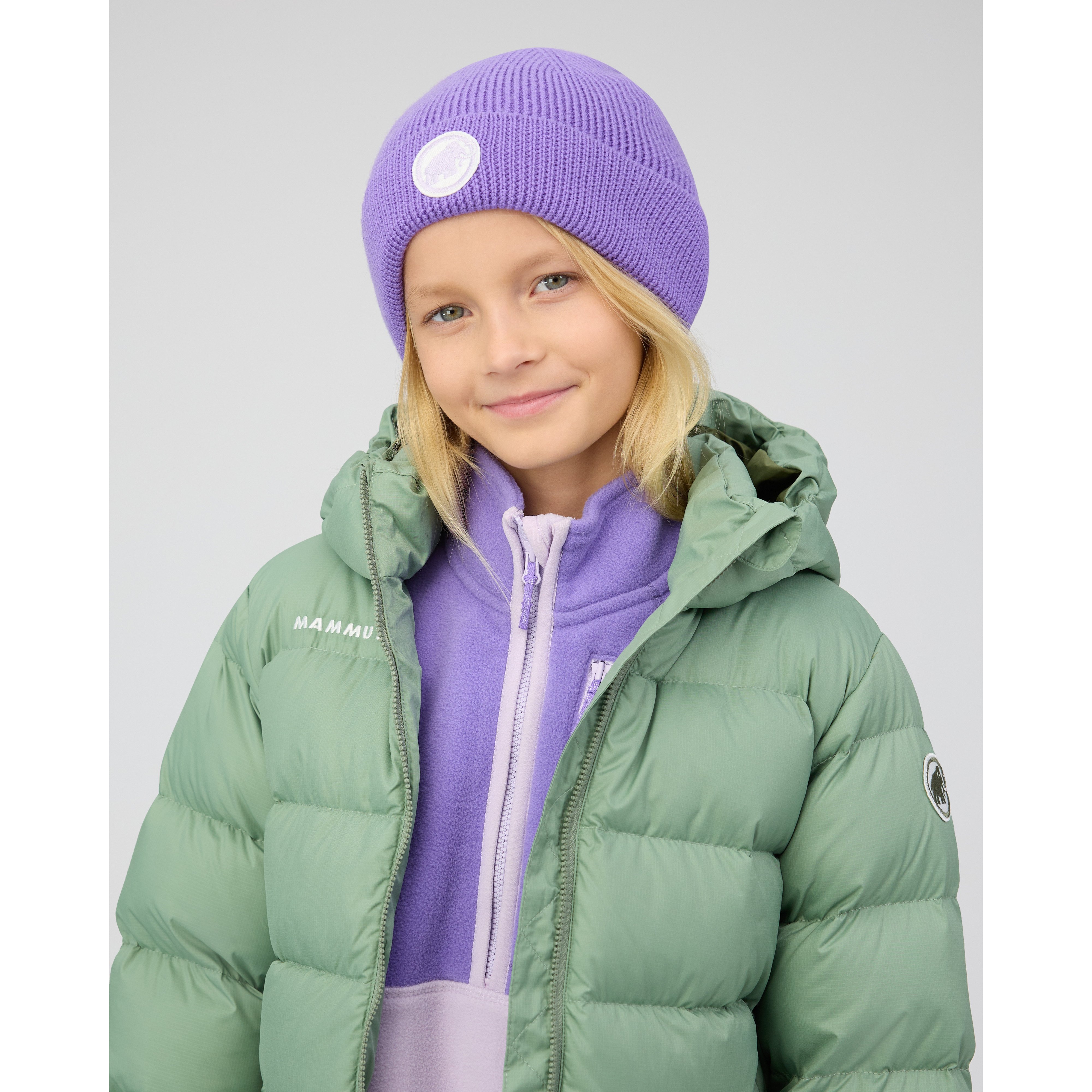 Hold unge, nysgerrige sind varme og klar til dagen. Denne hue er lavet med 100% RWS-uld for en hyggelig, komfortabel pasform på kølige klatringer, frostige vandreture og daglig leg. Den ombukkede design giver ekstra varme over ørerne. Afsluttet med et Mammut logo-patch, hjælper den alsidige Mammut Logo Beanie børn med at holde sig varme, når de udforsker naturens magi i det fri.