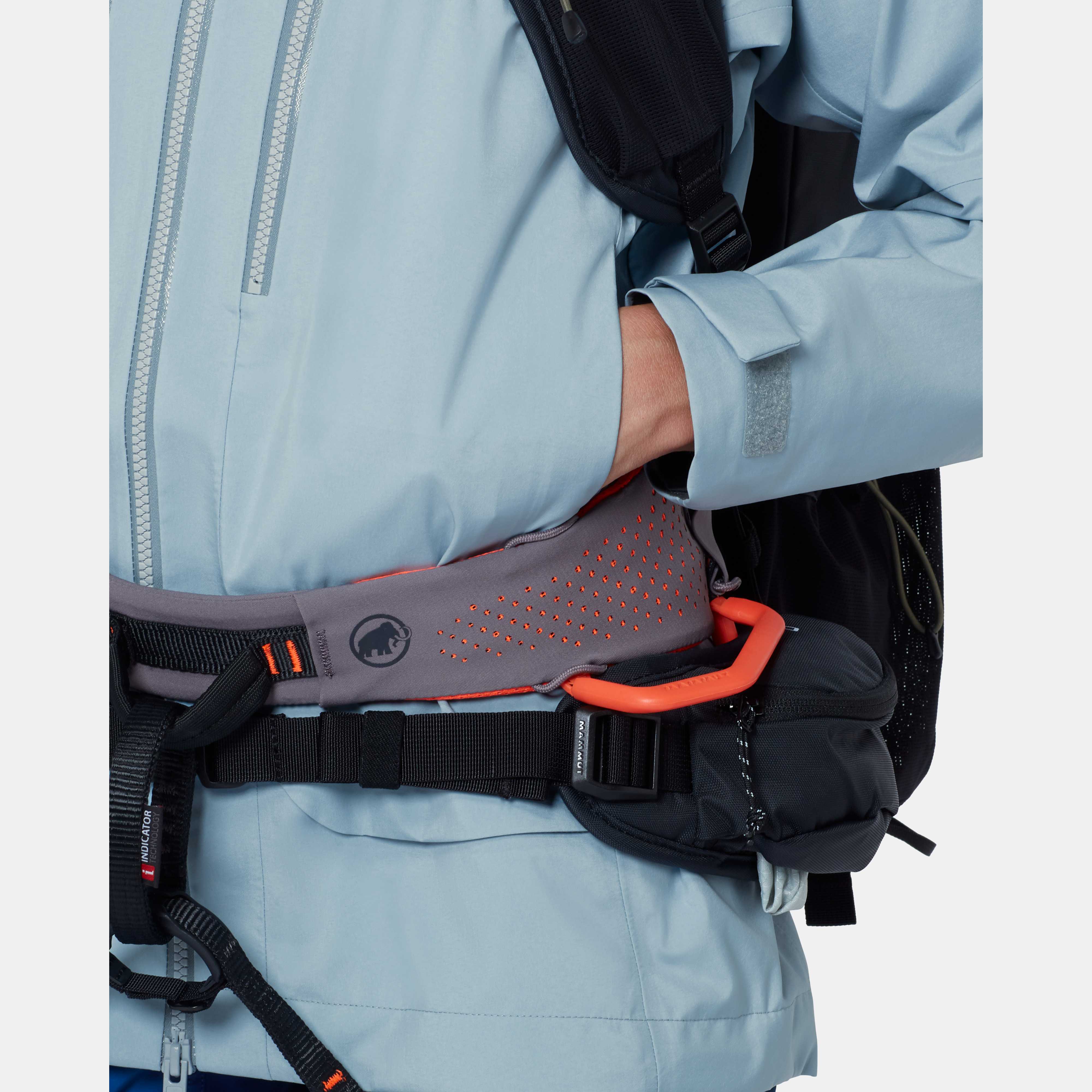 • 2 climbing harness- and backpack-compatible front pockets with cross-over access and water-repellent zippers