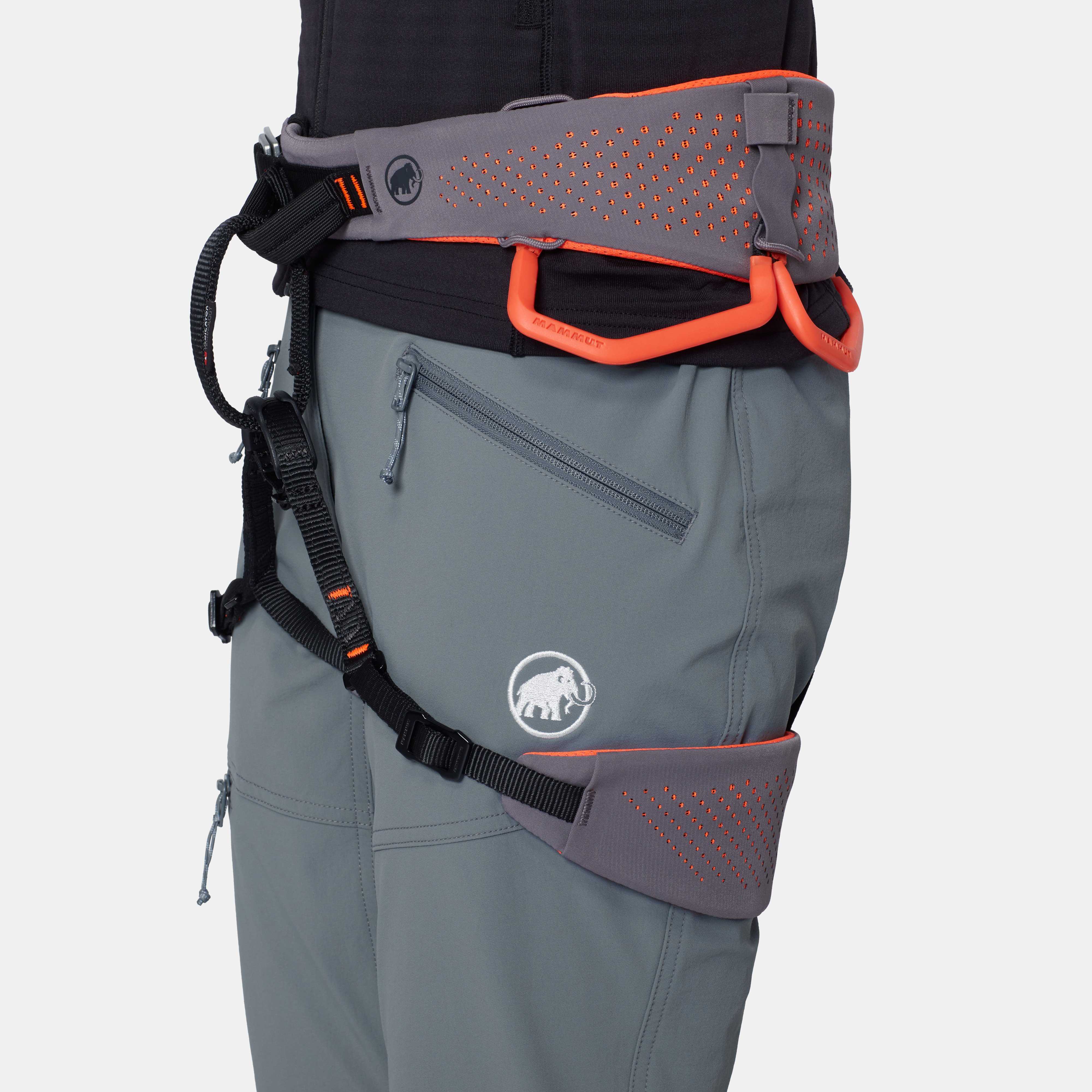 • Harness-compatible zippered leg pocket