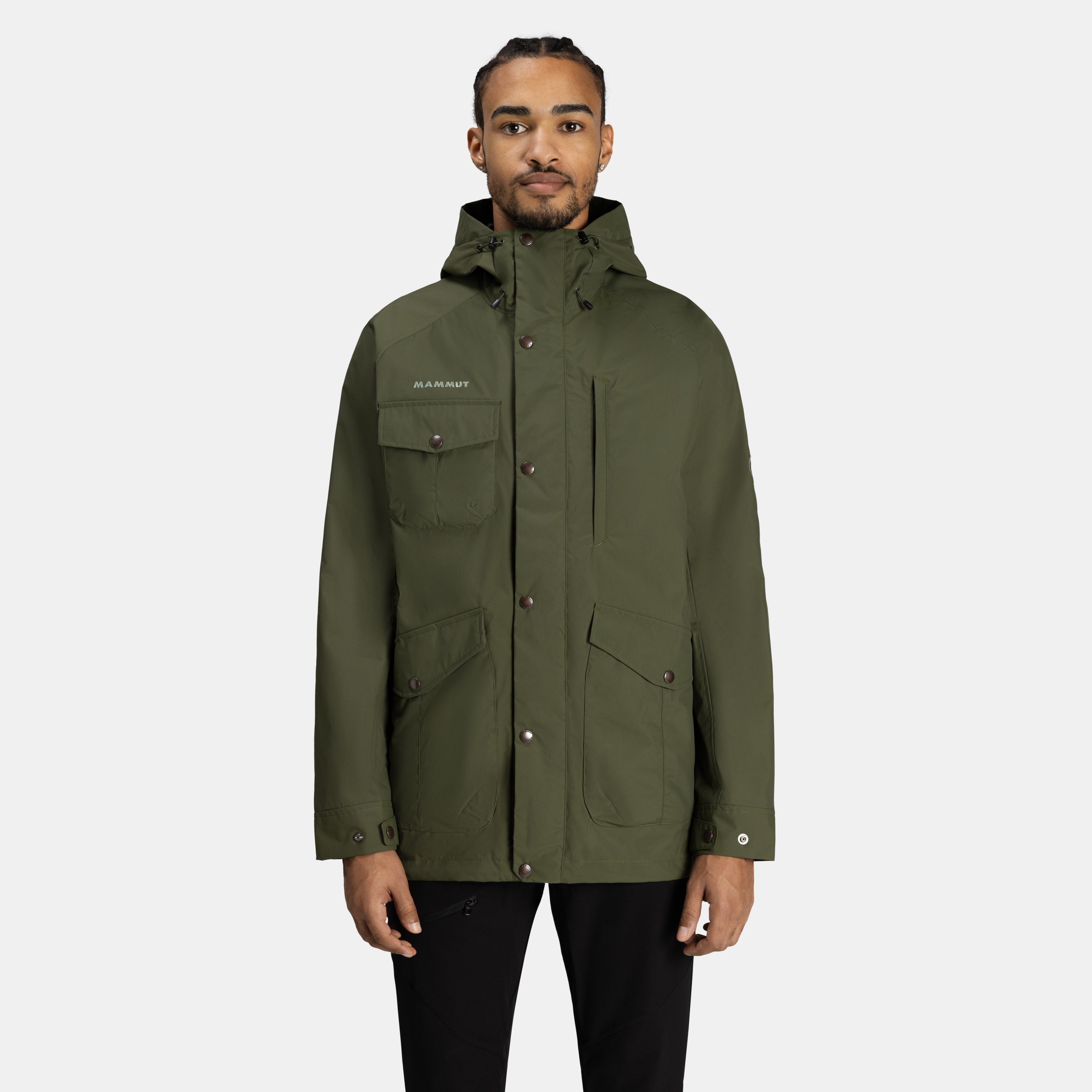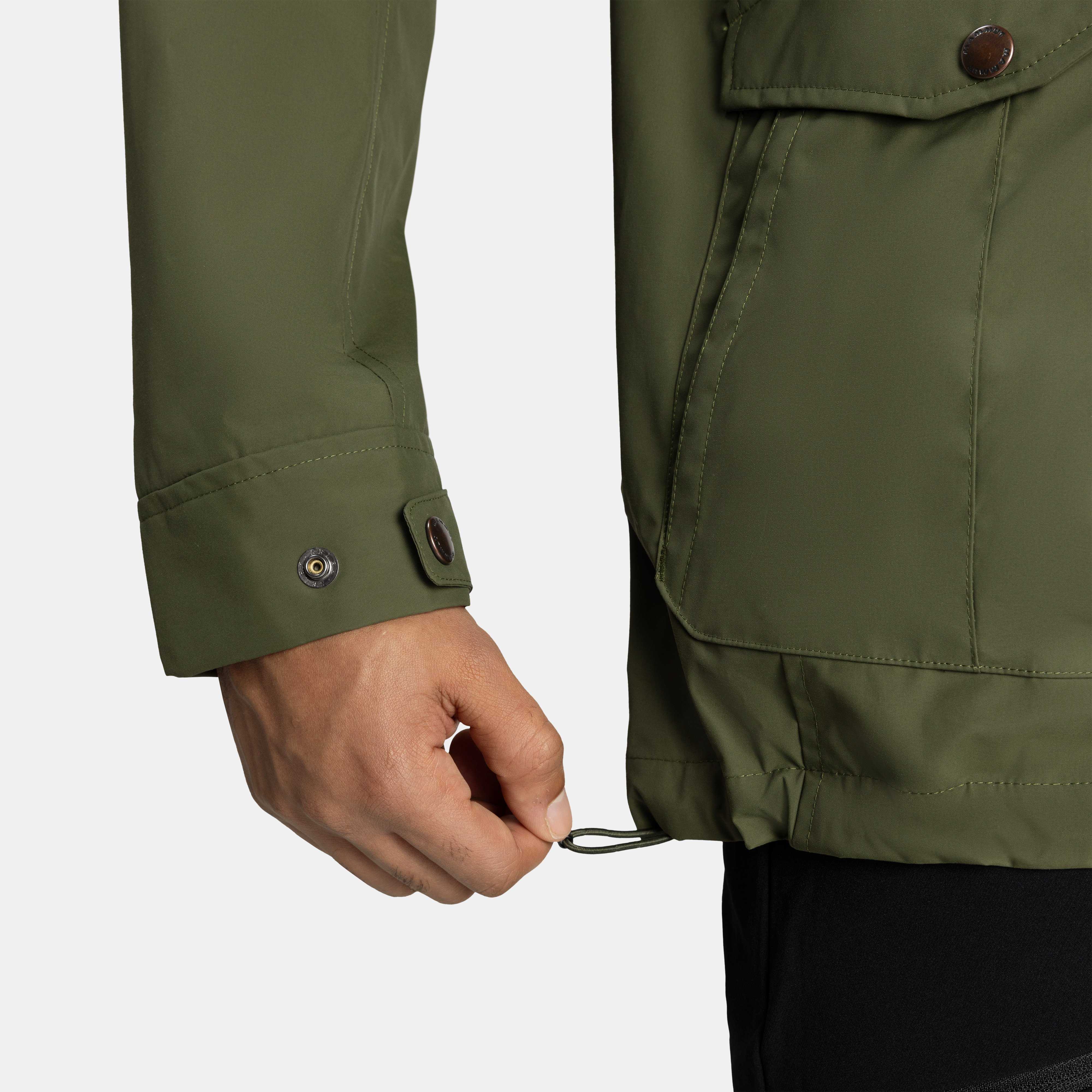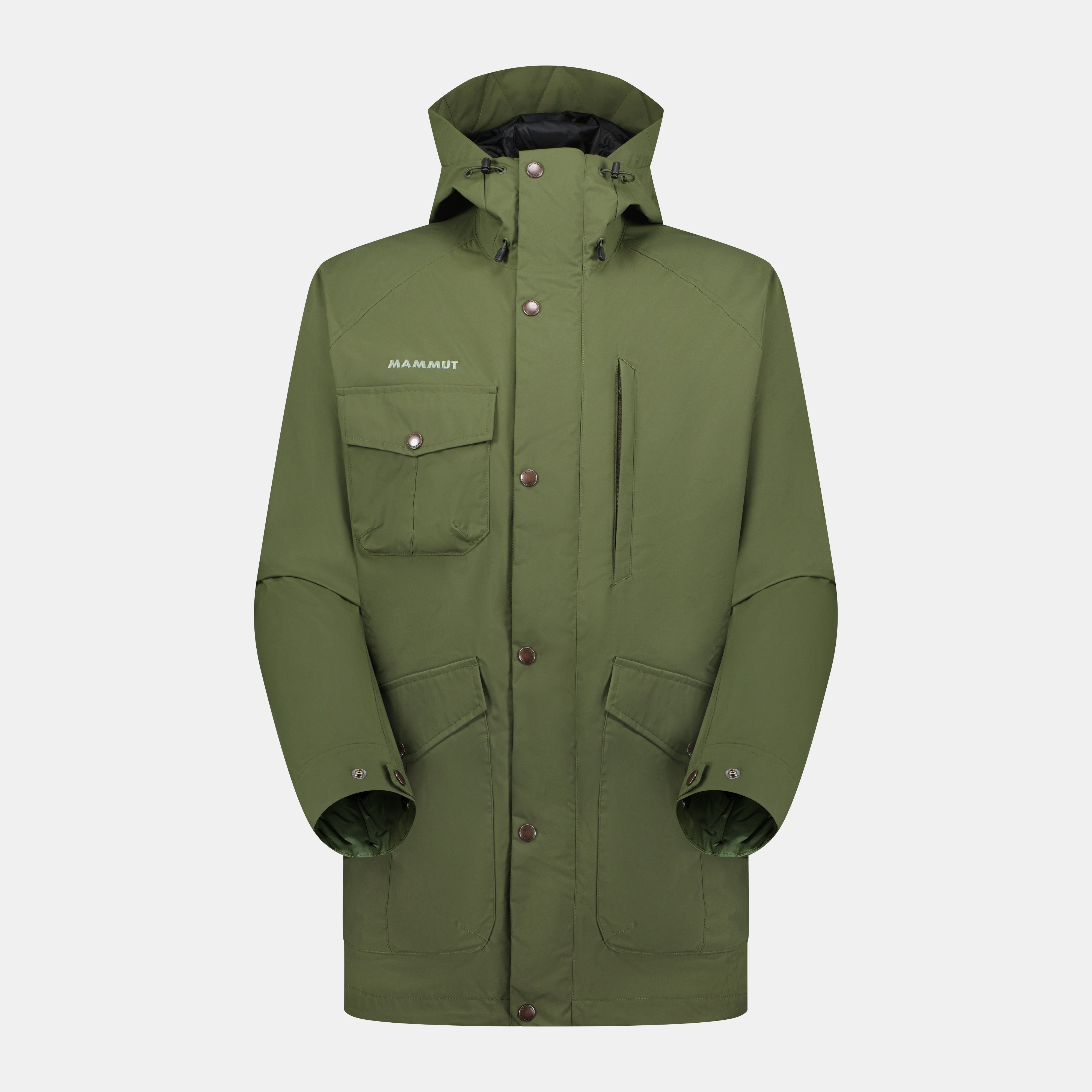 - Flap with snap buttons over the front zipper for greater weather protection