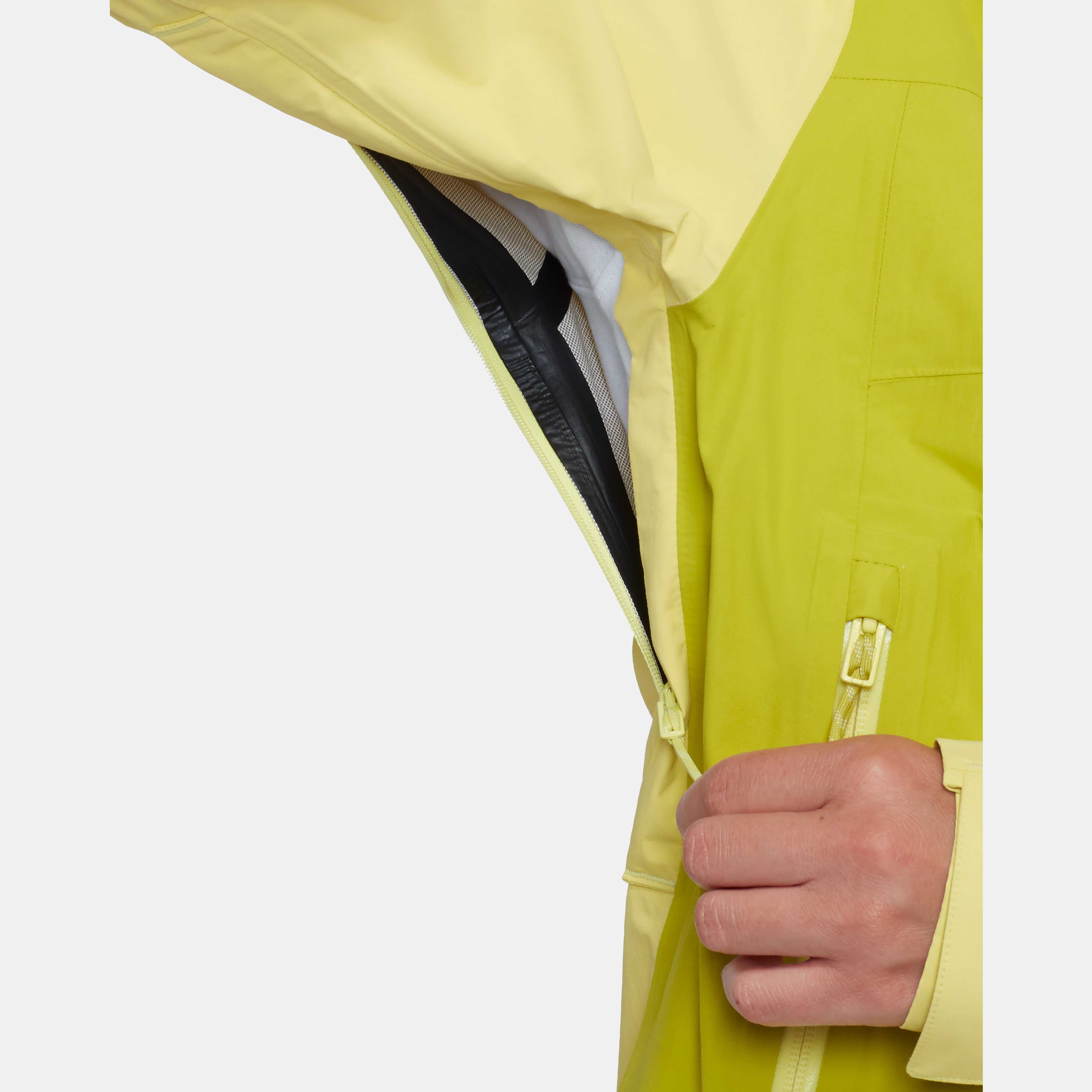 Designed for unpredictable conditions on alpine adventures. This waterproof hardshell is made from 2.5-layer Mammut DRY Tour laminate with DWR Coating to keep you dry as you navigate your route. A helmet-compatible hood keeps rain out, while underarm vents boost breathability on steep climbs. Two...