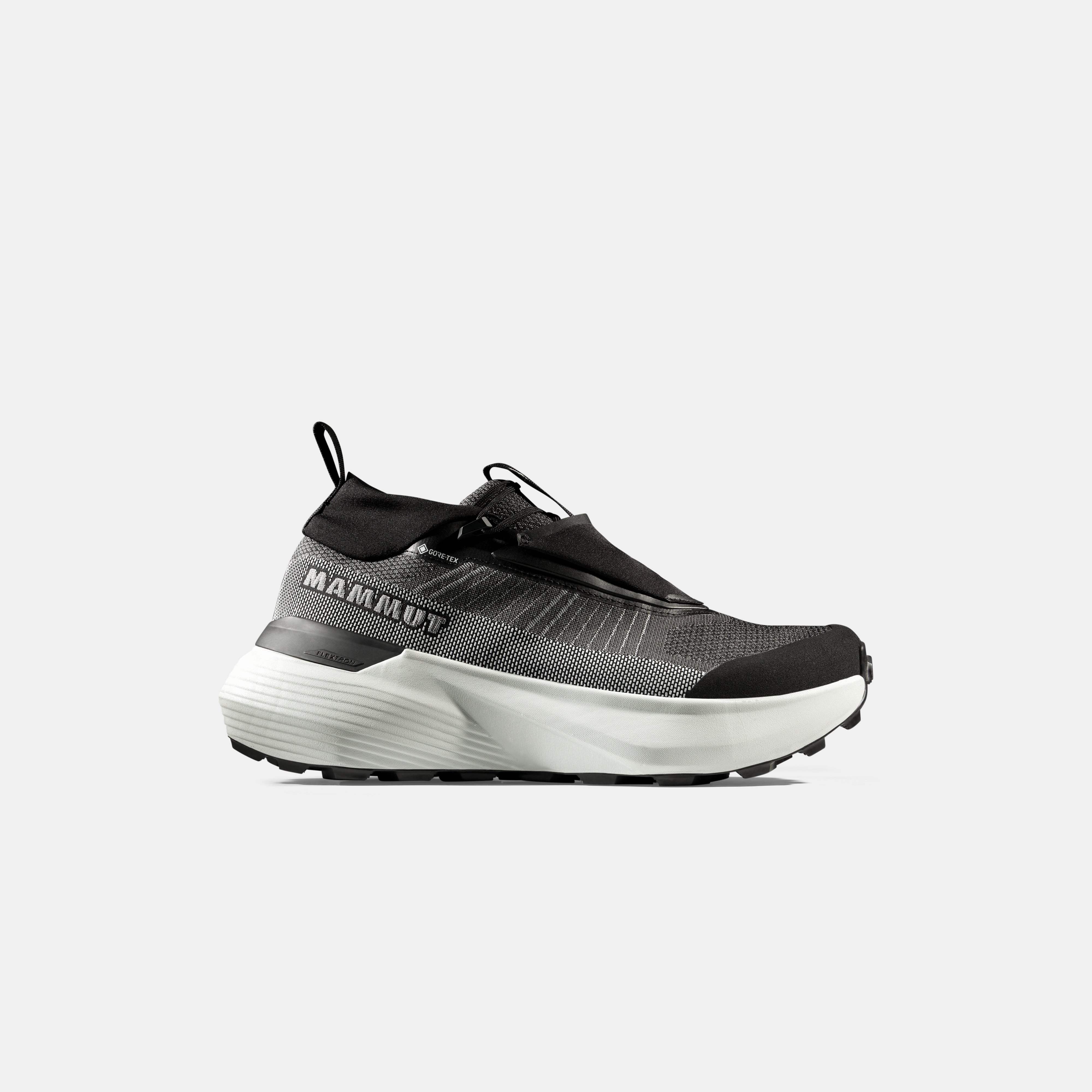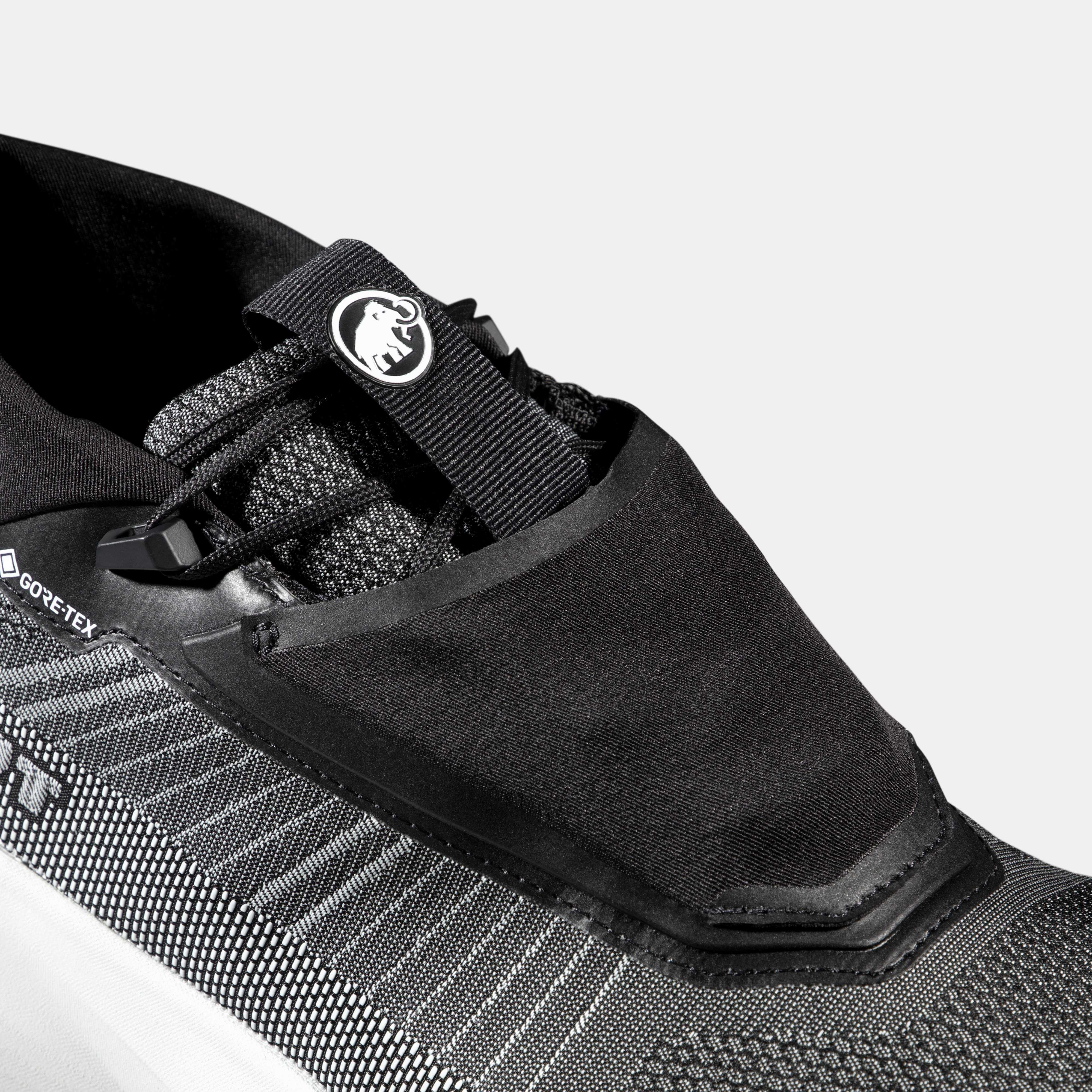 Where the swiftness of a trail running shoe meets the durability of a hiking shoe. Made with a Mammut Swiss Design outsole for reliable grip, these shoes are equipped for your favorite local trails. The rocker-shaped sole provides a smooth landing and easy toe-off for maximum energy return. A...